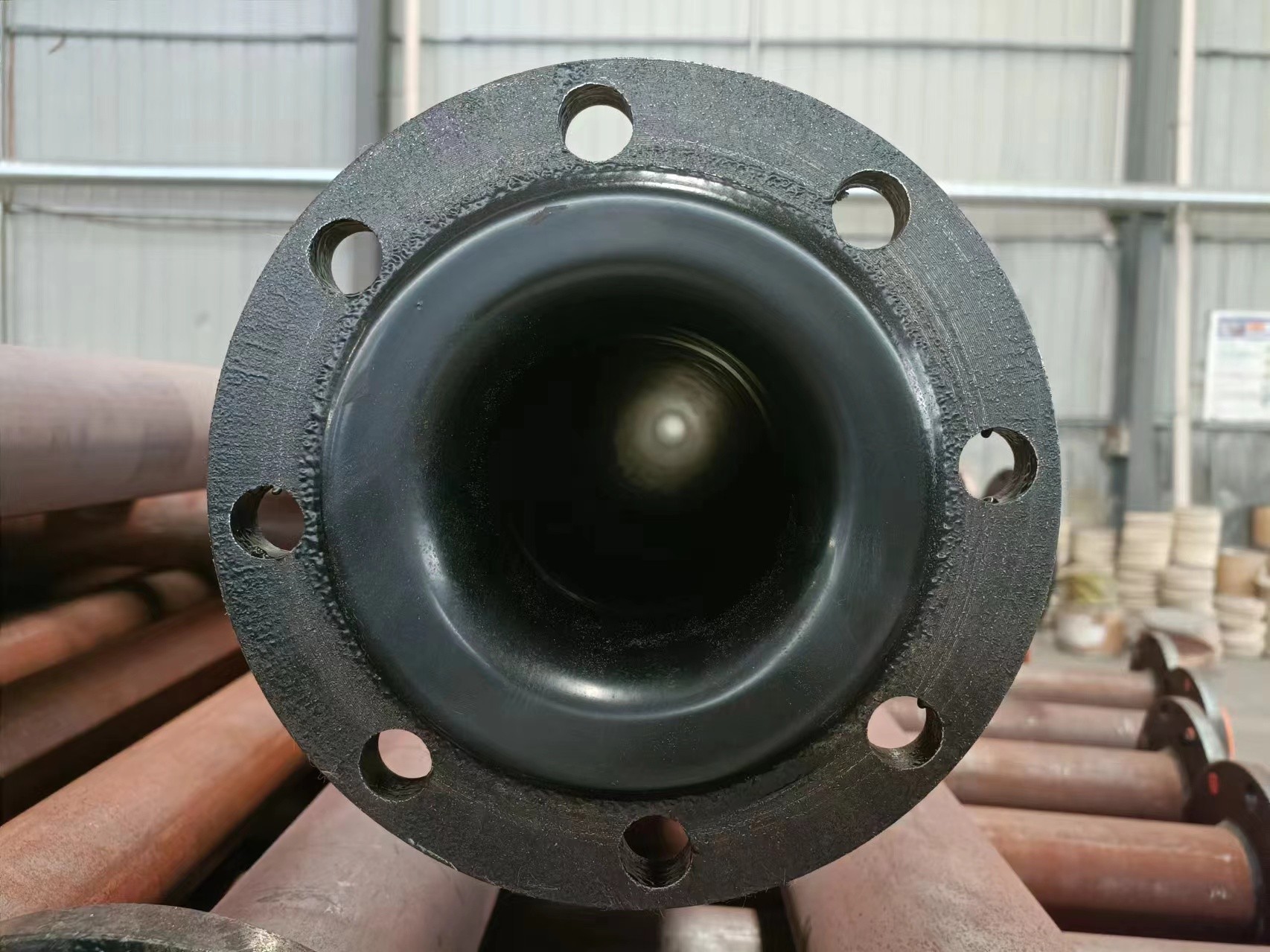 5.抗老化性能优越,在正常使用压力温度下一般使用寿命达到15年以上(理论值)。管道使用6-8年后近90°转动一次,使用寿命会更长,衬胶管道可反复衬胶使用4次,降低成本,制作周期短,可确保工期。